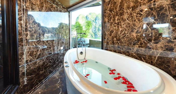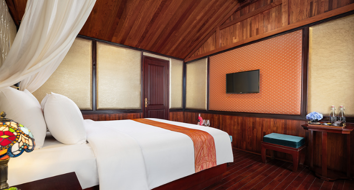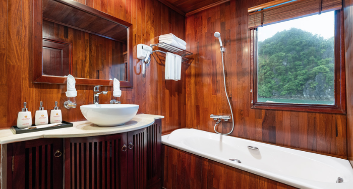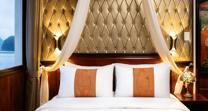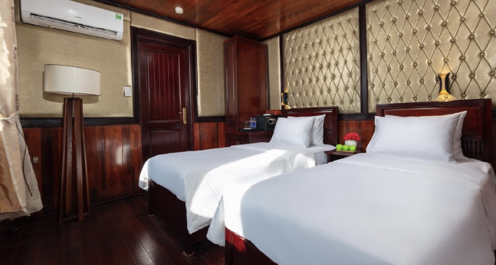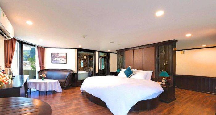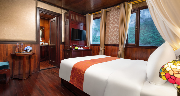 Amanda Legend Cruise brings a refined blend of modern comfort and traditional Vietnamese charm to the heart of Halong Bay. Featuring spacious cabins with large windows and private balconies, the cruise allows guests to enjoy panoramic views of the limestone mountains and emerald waters. Its design is warm, elegant, and welcoming—ideal for couples, families, and mature travelers seeking a peaceful retreat. With a well-planned route through quieter areas of the bay, Amanda Legend Cruise offers a relaxing and scenic journey. The crew’s hospitality ensures a smooth, memorable, and worry-free onboard experience.