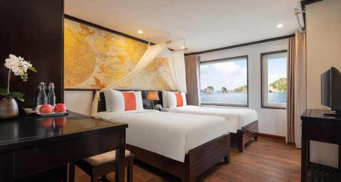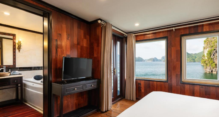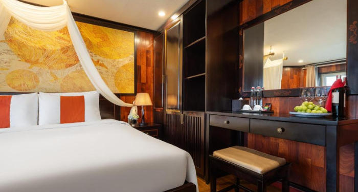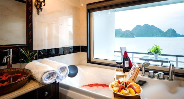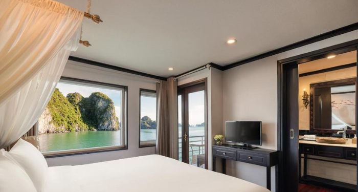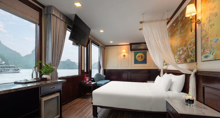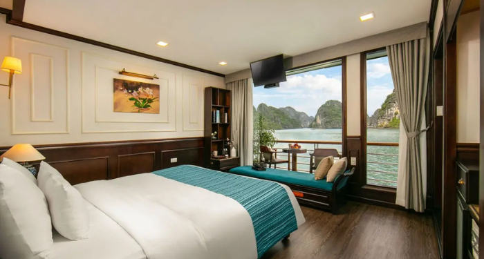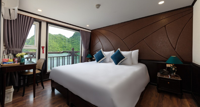 Amanda Premier Cruise offers a refined journey through Halong and Lan Ha Bay, combining modern comfort with elegant Asian touches. With spacious cabins featuring private balconies, guests can enjoy uninterrupted views of the bay. High-quality onboard facilities and a dedicated team ensure a comfortable and memorable sailing experience.