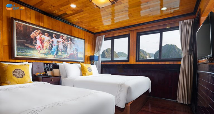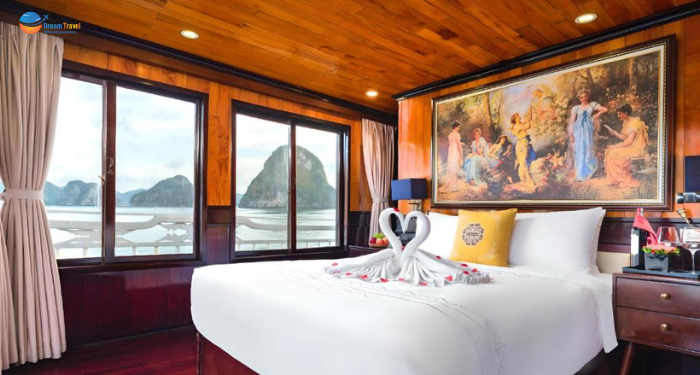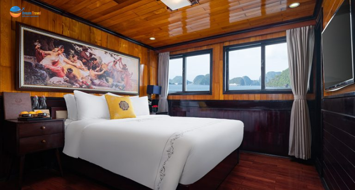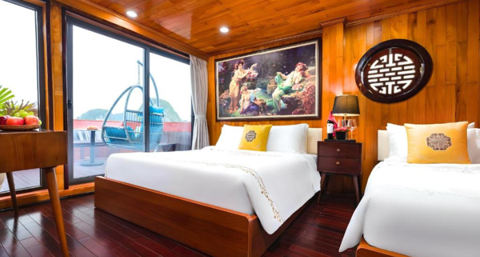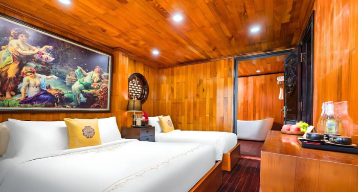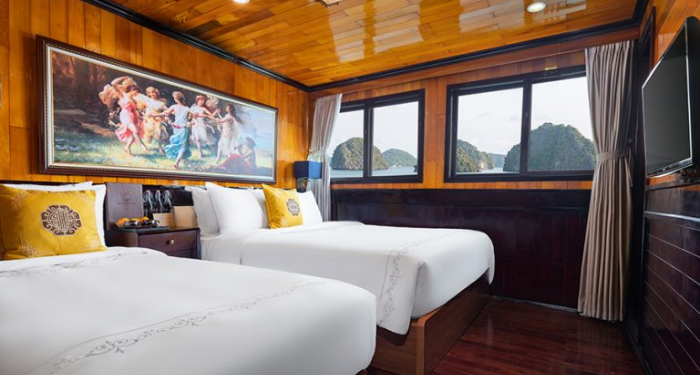 Inspired by the serene beauty of Halong Bay, Hera Classic Boutique Cruise blends elegant traditional design with modern comfort, offering a tranquil voyage through Vietnam’s iconic karst landscape. With 19 luxury cabins — ranging from cozy 20 m² deluxe rooms to spacious 45 m² suites - each cabin is thoughtfully designed to deliver privacy and comfort, many with private balconies or ocean-view windows.