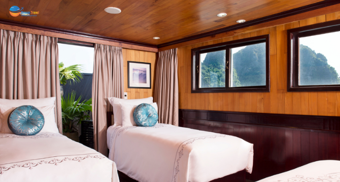 Wifi is available in the restaurant/bar area only, internet connectivity is limited due to geography of Ha Long bay