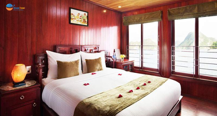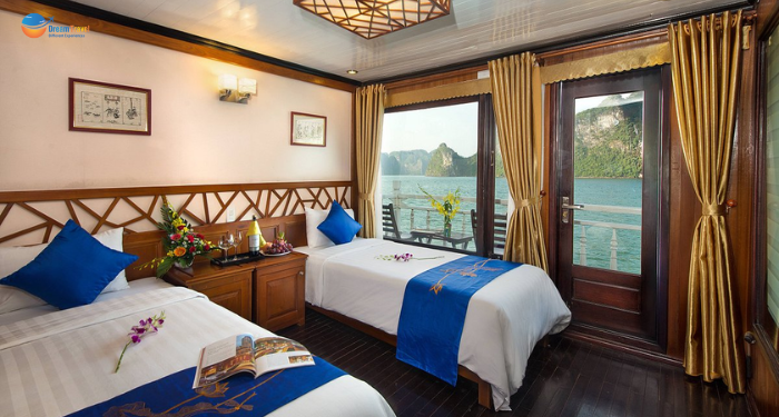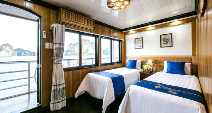 Featuring an enchanting journey through Ha Long Bay, Royal Palace Cruise captures the timeless charm of classical Eastern design blended with refined European elegance. With beautifully appointed cabins, each offering private bay views, along with relaxing sundecks, outdoor lounges, and a restaurant serving exquisite Asian–Western cuisine, Royal Palace Cruise delivers a truly elevated and memorable experience. A perfect choice for travelers seeking comfort, serenity, and royal-inspired luxury on the waters of Ha Long.