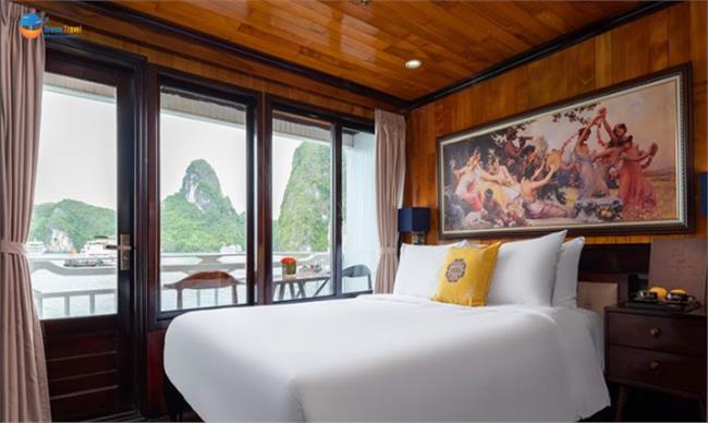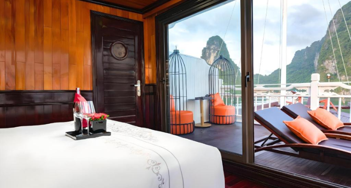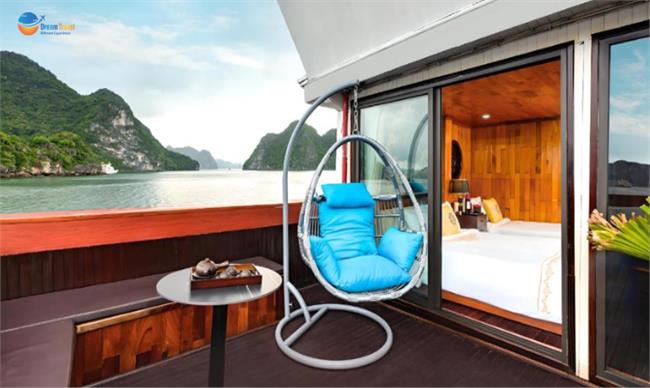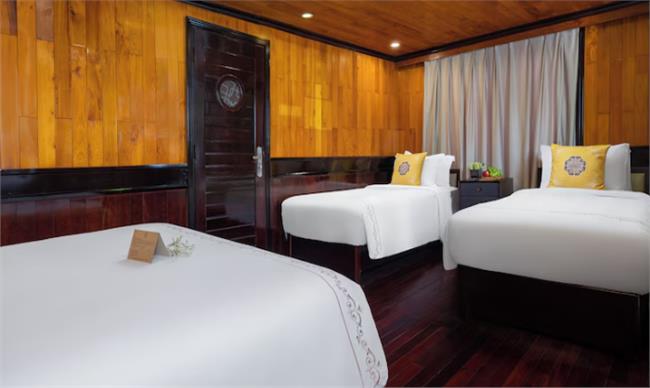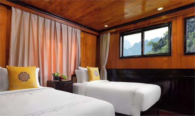 Inspired by the serene beauty of Halong Bay, Hera Classic Boutique Cruise blends elegant traditional design with modern comfort, offering a tranquil voyage through Vietnam’s iconic karst landscape. With 19 luxury cabins — ranging from cozy 20 m² deluxe rooms to spacious 45 m² suites - each cabin is thoughtfully designed to deliver privacy and comfort, many with private balconies or ocean-view windows.